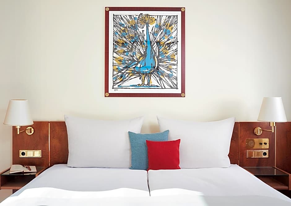 This double room features a large double bed or two single beds, air conditioning, a mini-bar, coffee and tea facilities, a TV, a safe, a trousers press and a bathroom with bathtub and hairdryer. It faces the street or courtyard. Some rooms offer a balcony.