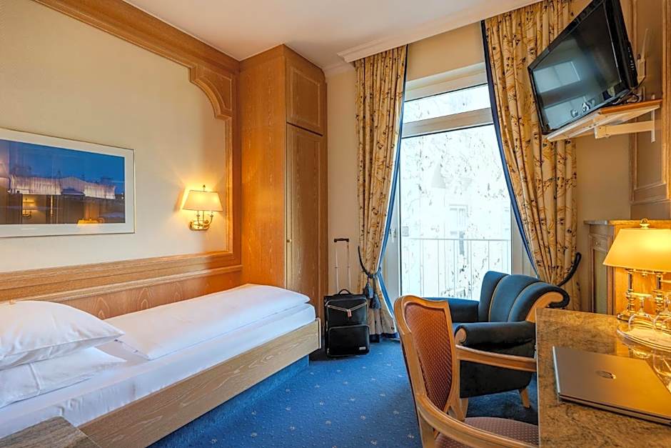 Nice 'old-school' good level hotel in a quiet surrounding near a small lake. Kind and attentive staff. Excellent breakfast. Rooms a bit old-fashioned but clean and cozy. Included a bathtub with a standing shower possibility. Bus connection close-by to the western centre of the city. Walking distance to the fair and convention center.