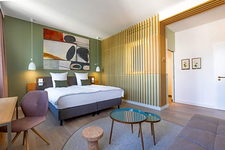 DEINHARD's hotel offers a variety of room types including Deluxe Double Rooms, Comfort Doppelzimmer, Suites, Junior Suites, Family Rooms, and Executive Zimmer. All rooms have a no smoking policy. The Deluxe Double Rooms and Executive Zimmer can accommodate 2 adults and 1 child while the Comfort Doppelzimmer and Junior Suite can accommodate 2 adults. The Suites can accommodate 3 adults and 2 children, and the Family Room can accommodate 3 adults and 3 children. Most rooms have a King size bed, with some also offering a sofa bed.