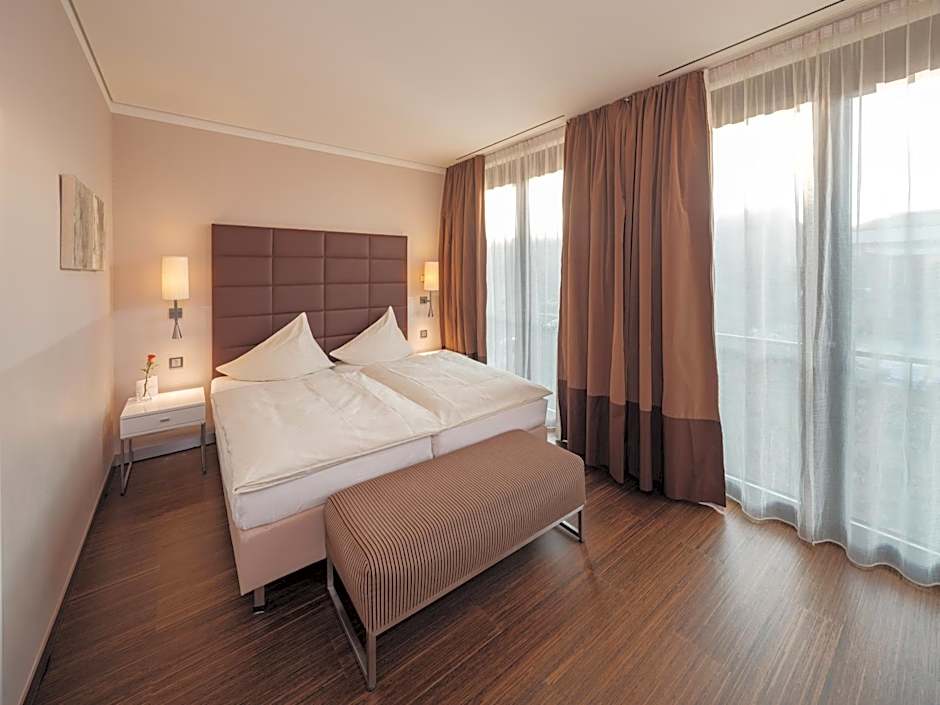 The Hotel Eberhards am Wasser offers superior double and single rooms available with or without river views. The rooms are non-smoking and have an average size ranging from 194 sqft to 237 sqft. The rooms accommodate either 1 adult or 2 adults with the option to include 1 child, and feature twin beds.