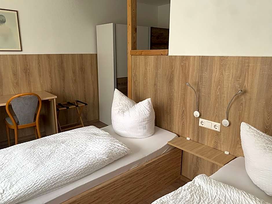 The reception staff's english was very limited, which made communication a little challenging. i dont know why its a thing in many European hotels but as a close couPke WE DID NOT LIKE THE TWO SINGLE MATRESSES PUSHED TOGETHER AND SEPARATE QUILTS WTF!!!!! There was only 1 chair in the room and only 1 glass, and only 1 tea bag and a kettle and two mugs which seemed odd. We were a couple. Need new towels- ours were very thin and fraying at edges. but overall it was quaint and very German.
