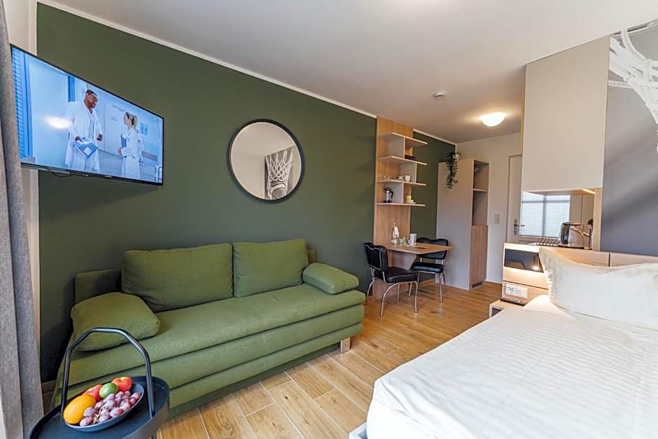 If you're looking for a touch of luxury, the Suite is the ideal choice, featuring a king-size bed and a separate living area with a sofa bed. This spacious suite offers plenty of space for relaxation and comfort. For those seeking a peaceful retreat with a view, the Studio with Terrace provides a cozy space to unwind, complete with a double bed and a sofa bed.