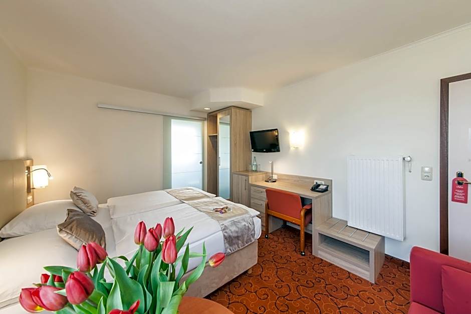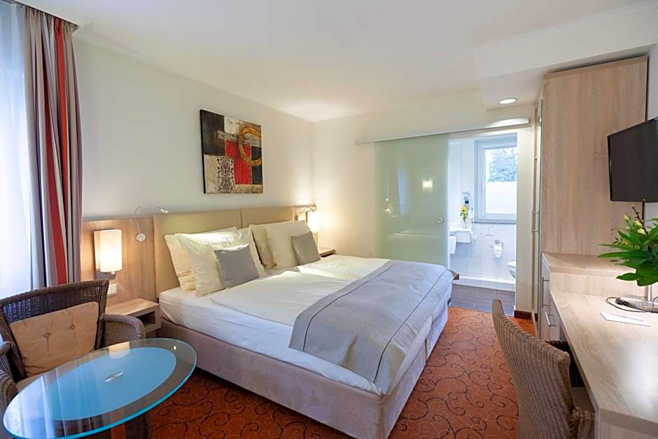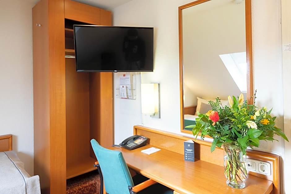 A good place to stay that is near a residential neighborhood and the tram line. The parking here is free on the street, but they do have a lot for €5 per night. There is a lot of foot and vehicle traffic around the hotel, so I did pay for the parking lot. The check-in was easy and the reception person was nice and friendly. This is your typical German hotel with a small elevator, a lot of interior doors, tight stairs and small rooms. There was some construction going on, so some exits were closed and required a little walk to exit. The room was fairly tight, but the bed was comfortable. When we entered, the room was hot, but the windows opened easily and it cooled down eventually. There was a desk area and the TV was nice, but not a smart TV. The wi-fi was easy to connect to and worked well. The bathroom was nice and clean, but small and got tight at times, especially in the shower. The noise outside did die down around 10:00 p.m., but was steady until then. The tram stop was just a couple block walk under the street, so that was very nice. The hidden gem here is the breakfast. The selection is awesome and the staff is fantastic! They keep everything well stocked and are very accommodating. I think I would stay here again just for the amazing breakfast buffet!