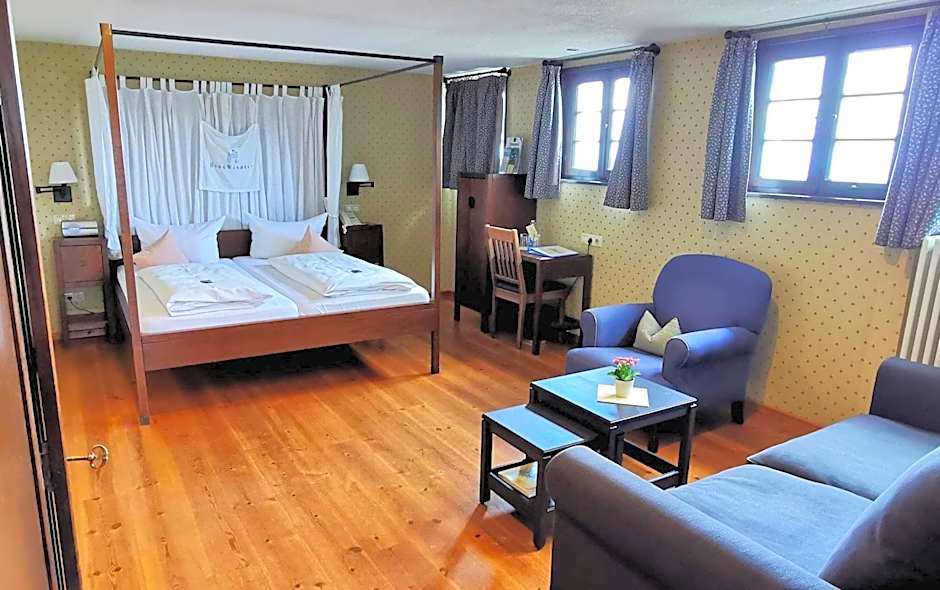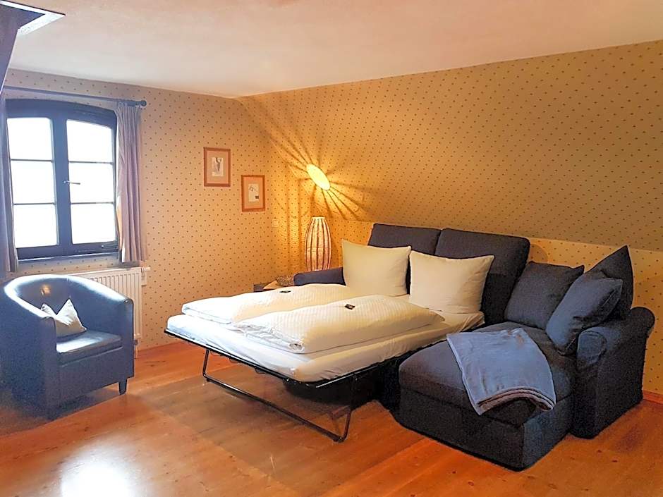 The location is incredible, with amazing views out over the Rhine Valley and woodland with plenty of interesting walking trails directly behind the hotel. The building is old & the decor is traditional but nothing feels dated; everything is clean and well maintained. The room was cozy & featured a 4-poster bed. The restaurant serves an excellent menu with lots of different dishes including vegetarian & vegan options. Dogs are welcome in the room & at dinner. There is a sauna & fitness suite in the basement which is accesible to all guests and can be privately booked for 90 min sessions. Most importantly, all of the staff were extremely friendly & competent and made us feel very welcome.