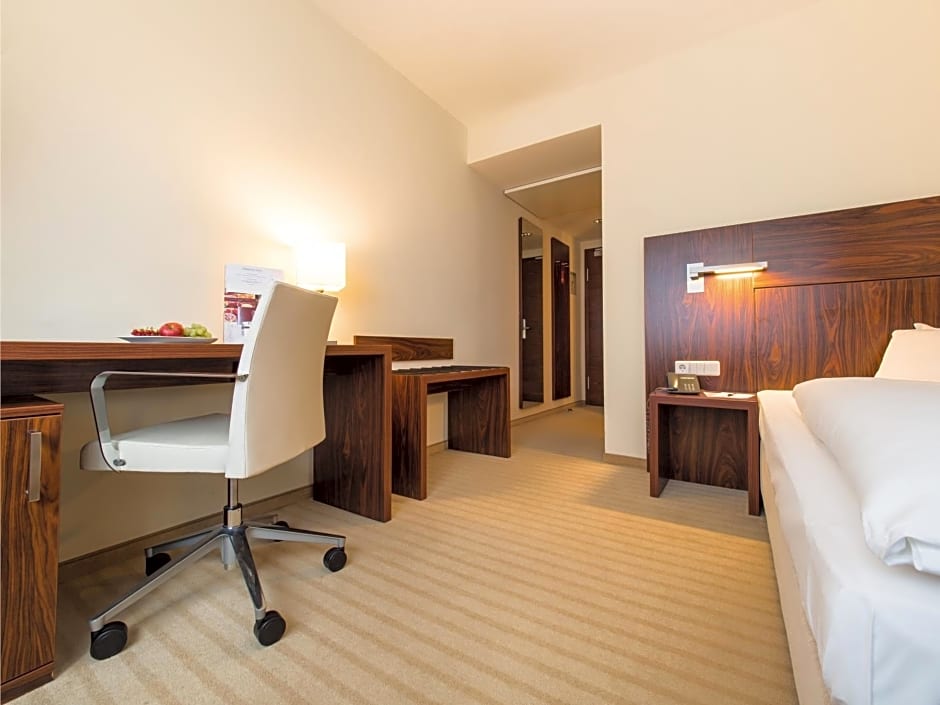 This spacious room offers a 42-inch flat-screen TV and a view of the Chemnitz Opera. It also features a bathtub, shower and a separate WC.