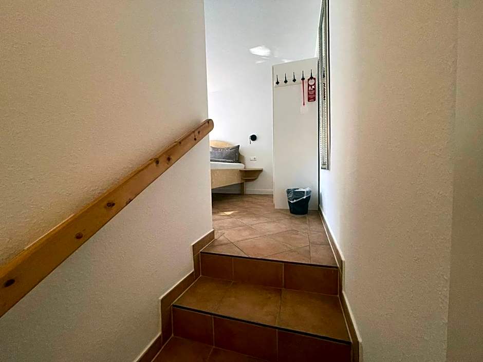 Bright room decorated in neutral tones offers a cable TV and private bathroom with a hairdryer. Some rooms feature a south-facing balcony. A bottle of water is included in the room.