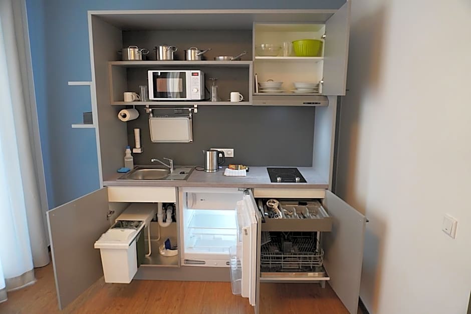 Featuring free toiletries and bathrobes, this studio includes a private bathroom with a walk-in shower, a hairdryer and slippers. In the kitchen, guests will find a stovetop, a refrigerator, a dishwasher and kitchenware. The air-conditioned studio features a flat-screen TV with cable channels, a washing machine, soundproof walls, a tea and coffee maker as well as garden views. The unit has 2 beds.