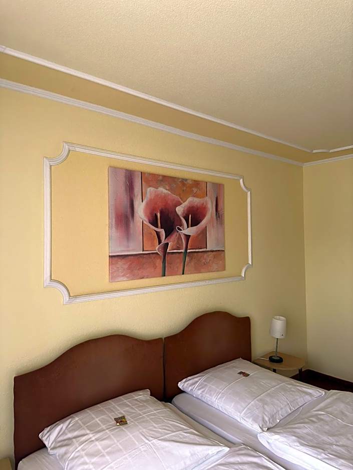 Parking outside, continental breakfast plentiful and fresh, friendly staff, convenient location for us, separate restaurant on ground floor with good Italian and German dishes on the menu, lift, lots of power sockets in room, bakery and supermarket within a 3 minute walk, town about 15-20 minutes walk.