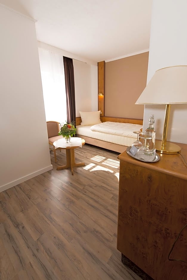 Very smart partly upgraded hotel right in the centre of town. Some quirky old things which add to character. Very comfortable beds, spotlessly clean, good shower, excellent breakfast, friendly and helpful staff, storage yard for bicycles. Rooms were well thought out but not large. Perfect for a one or two night stay.