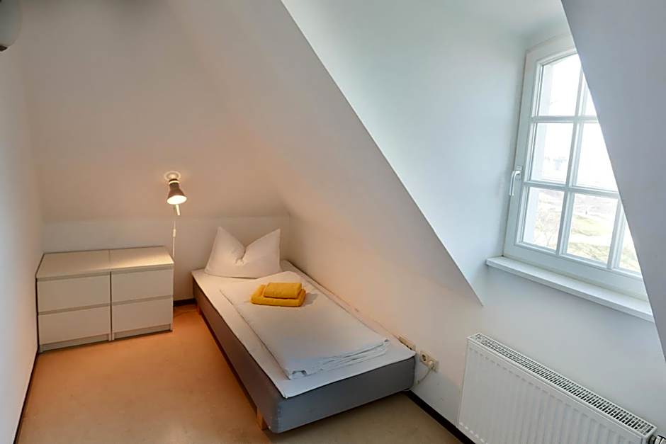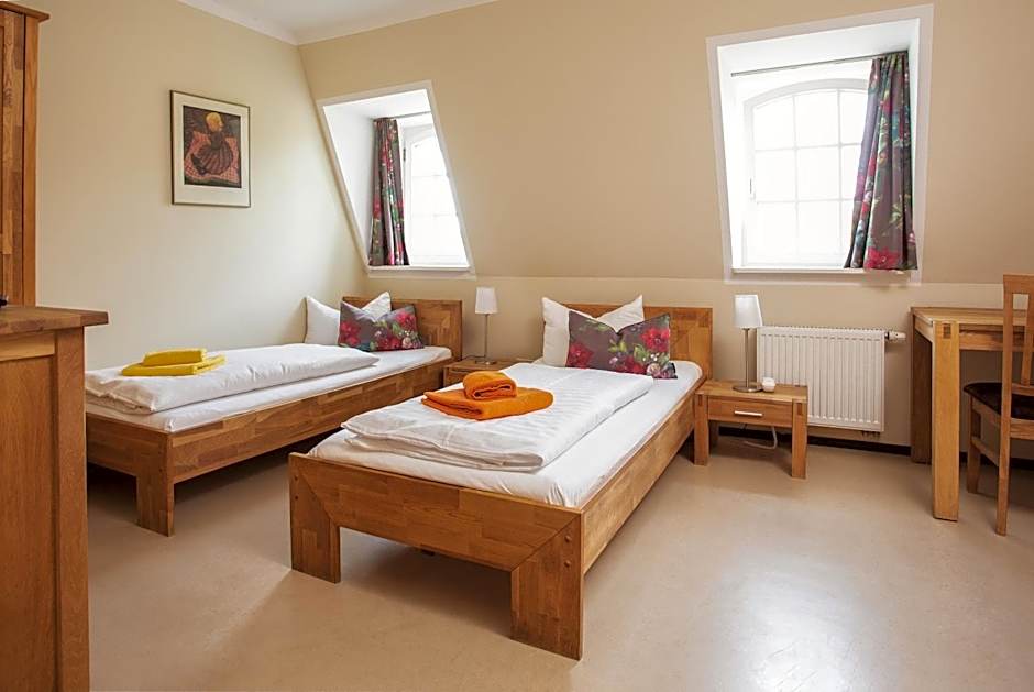 There are several well equipped guest kitchens, including a fridge, we made our own breakfast. Staff ist super friendly and accommodating. There was a mix up with our key and Frau Donner went out of her way to solve it. Thank you so much for that! We were allowed to check out late, thanks for that too. Our room was very new, very clean, linoleum floor and wood furniture, excellent bathroom, AC. Beds are comfy. The garden and terrasse are very nice and spacious. Wi-fi worked just fine.