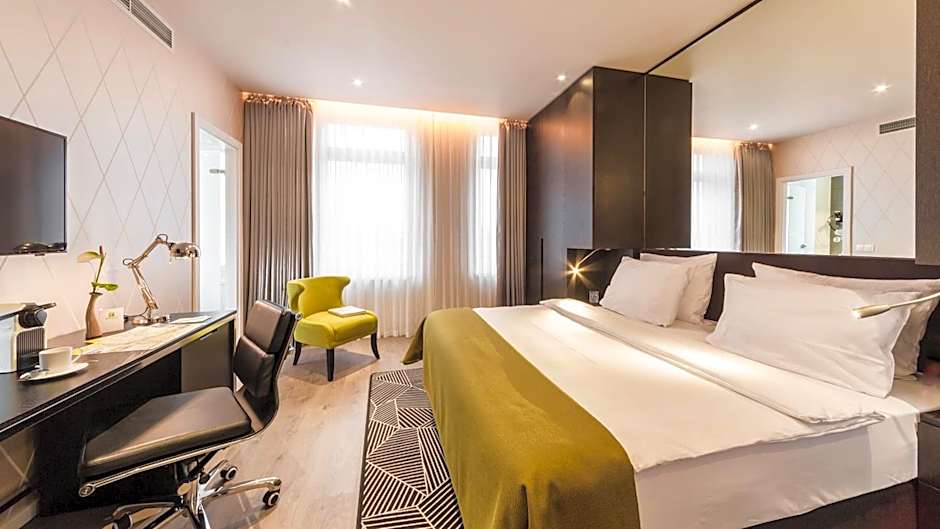 The Holiday Inn Dresden - Am Zwinger offers a variety of room types, including Standard Double Rooms, Superior Twin Rooms, Executive King Rooms, and Superior Double Rooms. All rooms are non-smoking and accommodate 2 adults and 1 child. The bed sizes range from Queen size beds to King size beds, and the room sizes vary from 194 sqft to 291 sqft.