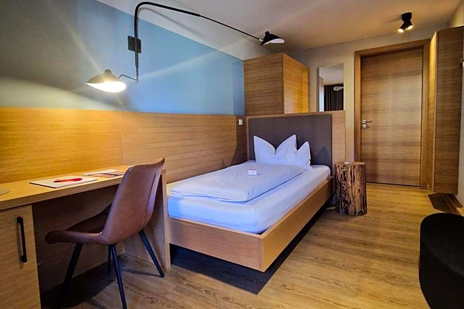 For travel planning, practical details include meeting and banquet facilities for events, and an airport shuttle available for an extra charge. Accepted payment options are Cash, Mastercard, Visa, and EC-Card. Room choices include Deluxe Double Room, Double Room, and Single Room, all non-smoking. Deluxe Double Room and Double Room accommodate 2 adults and 1 child with a queen-size bed, while the Single Room accommodates 1 adult with a twin bed.