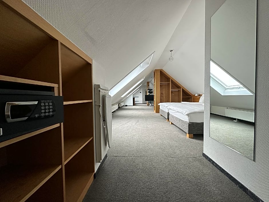 The heater is not warm enough, especially during the colder nights, despite that we switched the button to maximum. Yes, we are tropical country people, but we didn't find this condition in our previous hotels / lodgings. And I suggest to put more hooks in the bathroom. Either to put one near shower door opening, and several additional hooks (preferably towel racks) to hang the wet towel. This bathroom is for three persons, so need more towel bars, and not only depends on heater's bars. It's not enough. Location is not very far from Messe Düsseldorf, but it is in a quiet area, there are not much buildings there. Hard to find nearby eateries. There is a hotel with a good reviewed restaurant just across the alley, but their opening hours are too late for us to having breakfast there.