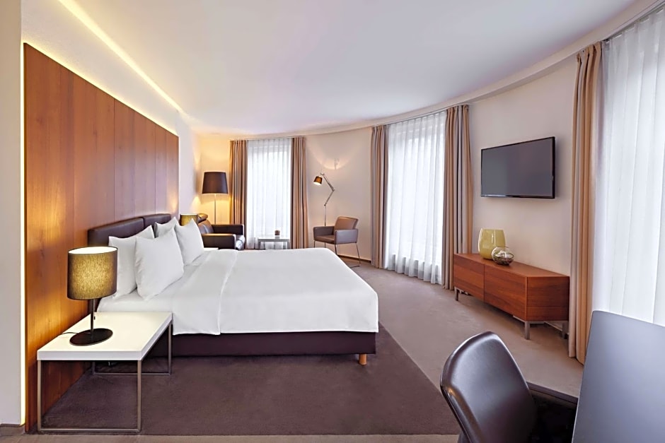 Wählen Sie aus verschiedenen Zimmertypen, die auf Ihre Bedürfnisse zugeschnitten sind. Ob Sie allein reisen, als Paar oder mit der Familie – Lindner Hotel Dusseldorf Airport, part of JdV by Hyatt hat das Passende für Sie. Vom komfortablen Single Room mit einem gemütlichen Einzelbett bis zum geräumigen Deluxe Twin Room mit zwei Einzelbetten ist für jede Vorliebe ein Zimmer vorhanden. Das King Studio und das Premium King Room bieten mit einem King-Size-Bett und viel Platz ein luxuriöses Erlebnis. Wer einen Hauch von Eleganz sucht, findet im Deluxe Queen Room und Queen Room ein komfortables Queen-Size-Bett und eine behagliche Atmosphäre. In allen Zimmern ist das Rauchen untersagt, sodass Sie ruhig aufatmen können: Ihr Aufenthalt wird frisch und rauchfrei sein.