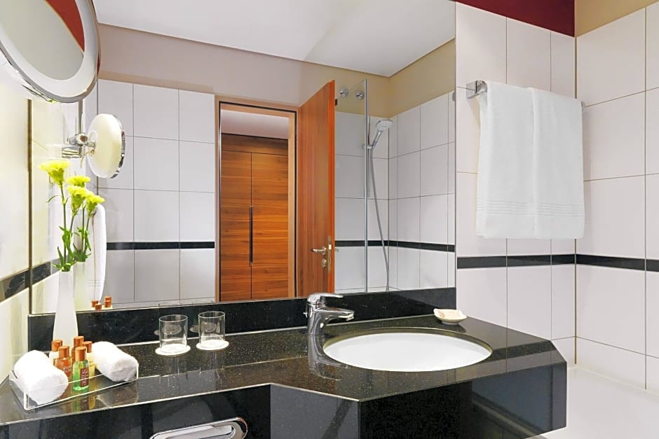 Choose from a variety of room types designed to cater to your specific needs at the Sheraton Duesseldorf Airport Hotel. Whether you're traveling with a loved one or a friend, the Superior Queen Room and Executive Double Room offer a cozy and comfortable stay with their Queen and Double beds respectively. If you prefer separate beds, the Executive Twin Guest Room and the Superior Twin Guest Room feature twin beds, perfect for a restful night's sleep. For a touch of luxury, opt for the Club Double Room, providing all the amenities of the other rooms along with access to the exclusive Club Lounge. No matter which room you choose, you'll enjoy the same impeccable service and modern comforts that make a stay at the Sheraton Duesseldorf Airport Hotel truly unforgettable.