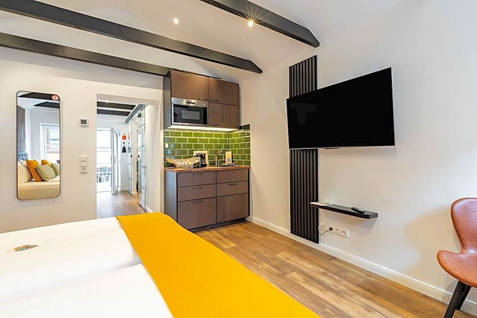 A great little place that combines the stylish and the practical. The room included a fully equipped kitchen. The location is perfect on a quiet street in the middle of the charming town.