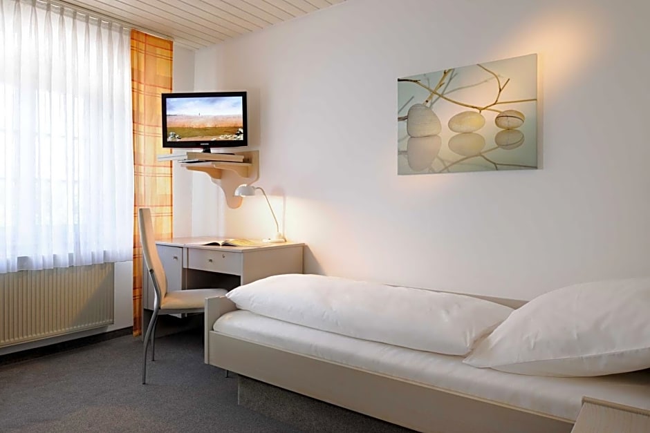 The hotel is just off the Autobahn but feels rural. The room was fine, the bed was comfortable, and the shower was very nice. Very good German breakfast buffet with local products. We enjoyed the hotel's sister restaurant, the Schloßschenke.