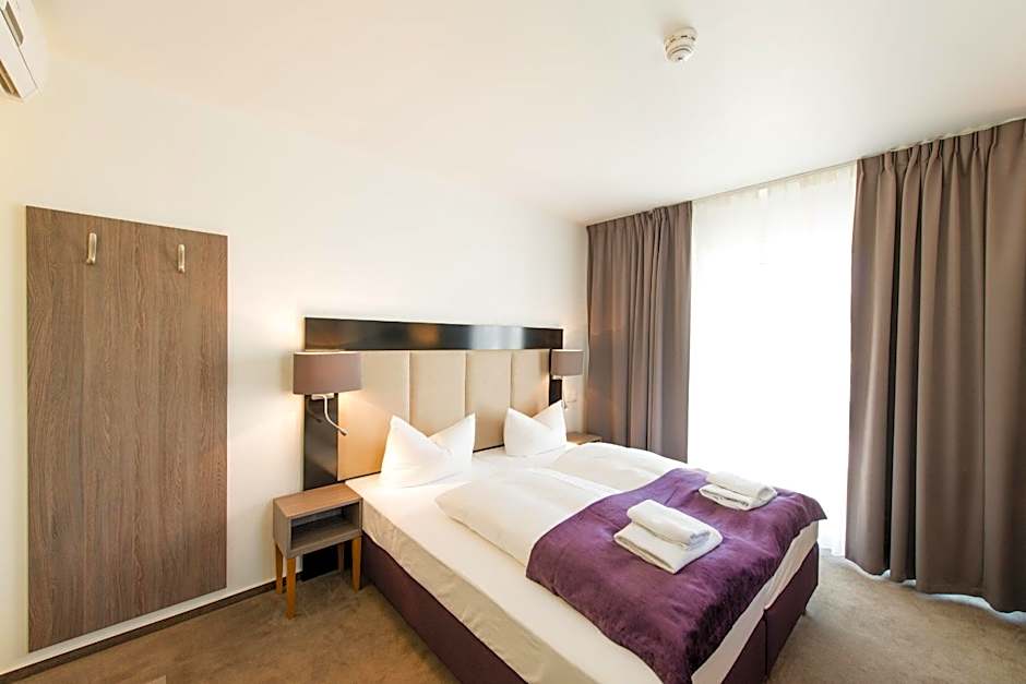 10 mins walk from direct tram to main train station, in a quiet commercial neighborhood (car dealerships, car repair etc), 5 mins walk to ALDI grocery store! Super clean sheets and bathroom! Room had AC, not sure why this isn't included as a room amenity. Friendly front desk staff. Furniture in room to put luggage on, in room safe. Costs about 10 euro to go to airport by tram/train and 18-20 by bolt/Uber (7am)