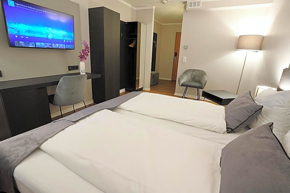 Very clean! The room smelled great and was spotless. I was also surprised that the room was cleaned while I was out, eventhough I was staying only 2 nights; most hotels don't bother! So this was really lovely. It was a stressful time for me, but the room was very comfortable, so I was able to really relax in the evening and sleep well. The location is perfect; if you need a supermarket, there is Norma right outside of the hotel. The city center is within 5 minutes walking distance, so if you would like to visit restaurants or get a coffee, family or business, this is perfect! I was really happy with the stay, especially for the price I did not expect it to be so great. The staff if very polite too. Although I had minimal interaction, they always smile and are kind. So nothing else to ask for in a hotel! Perfect.