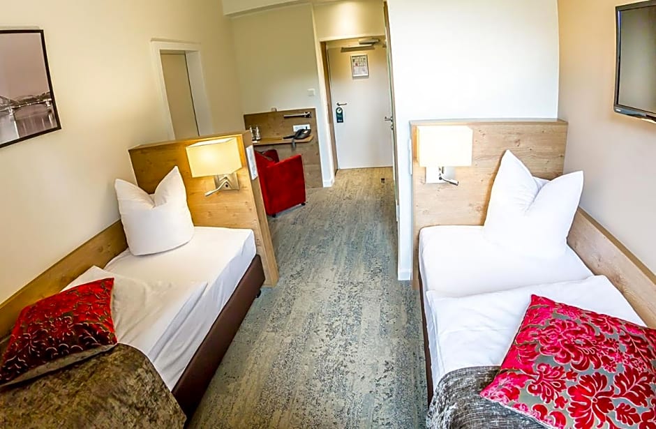 After a day of exploring the bustling city of Frankfurt, retreat to the comfort of the Maingau Hotel's cozy rooms. Choose from a variety of room types to suit your needs and preferences. The Family Room with Bath is perfect for larger groups, accommodating up to 4 adults and 2 children. It features a sofa bed and a queen-size bed, ensuring everyone has a comfortable place to rest. For couples or solo travelers, the Standard Double Room offers a queen-size bed and a charming space to relax after a long day.