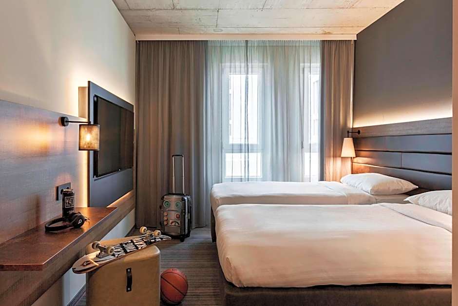 Very cool vibe of the hotel. Lots of places to hang out downstairs. Room was nice and clean. Ideal ironing room on every floor. Reception staff need a change of attitude and to smile a little. Cool location away from the immediate city centre and generally calmer area. Nice supermarket located 3 minutes away. Tram is 2 minute walk away that can take you into city centre with 15 minutes. New ECB is not far from the hotel and riverside walkway just behind the hotel - ideal for run or cycle along to the park.