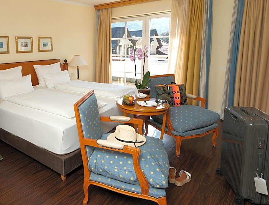 Guests can enjoy additional features like free WiFi, a 24-hour front desk, room service, a restaurant, and breathtaking views of the surrounding mountains and landmarks. Whether you're looking to unwind at the spa, take in the views from the sun deck, or explore the nearby golf course and tennis court, this hotel offers a truly unforgettable stay for travelers seeking a top-notch experience in Frasdorf.