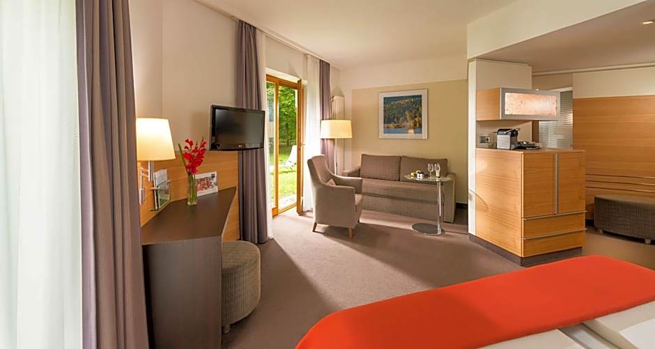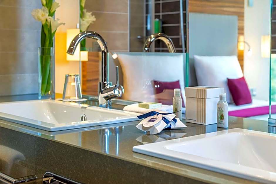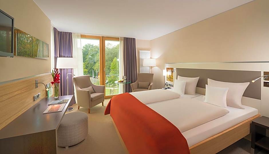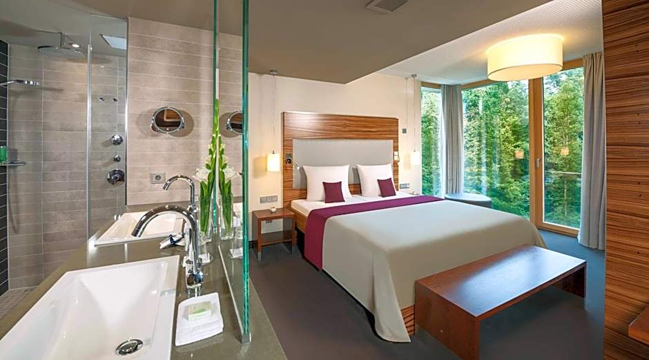 These modern classic rooms are spacious and offer a view of the Mooswald Forest. An elegant, private bathroom is featured.