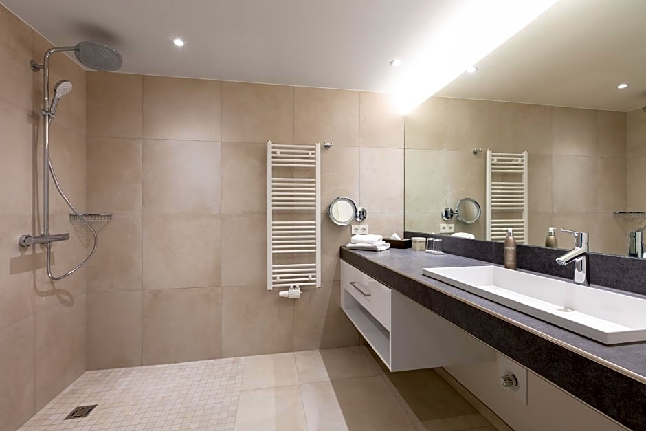 This suite is consisted of of 1 living room, 2 separate bedrooms and 1 bathroom with a walk-in shower and free toiletries. The suite offers a flat-screen TV with cable channels, soundproof walls, a mini-bar, a tea and coffee maker as well as garden views. The unit offers 2 beds.