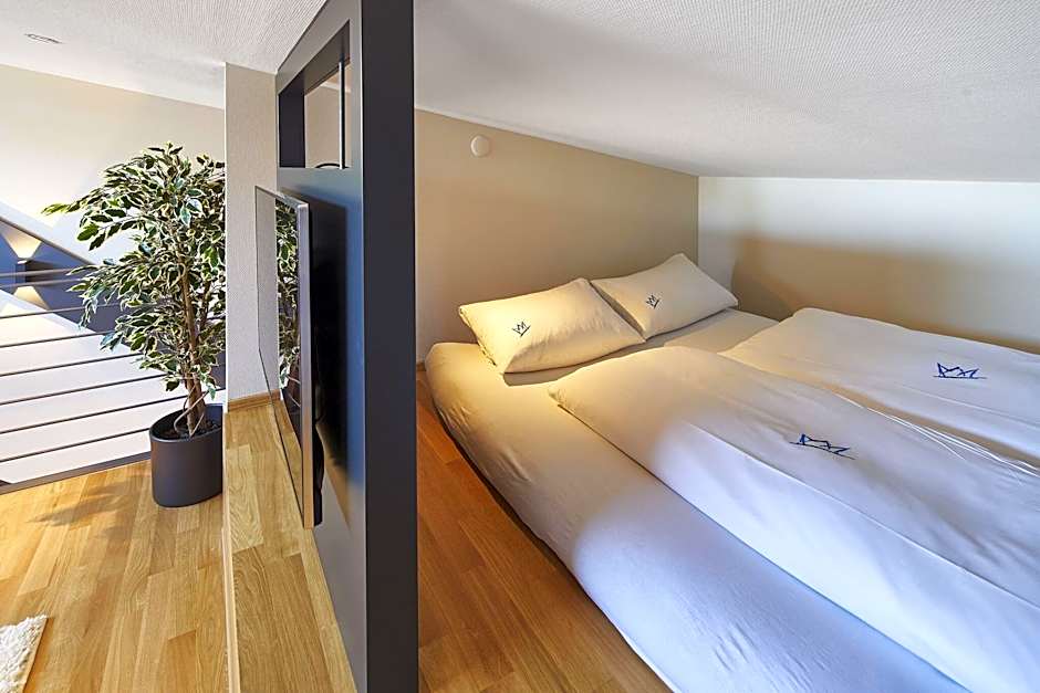 Hotel City Krone offers a variety of room types including Premium Double Rooms, Standard Double Rooms, Budget Double Rooms, and Single Rooms. The Premium Double Rooms come in three variations - Plus, BELLE ETAGE, and Maisonnette, with sizes ranging from 269 sqft to 377 sqft. All rooms are non-smoking and can accommodate 2 adults, with some allowing an additional child. The bed sizes in the rooms are either Queen size beds or Twin beds for the Single Room.