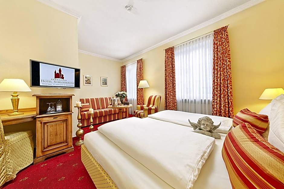 Please note, when staying at Hotel Schlosskrone, the check-in times are from 16:00 up to 21:00 and check-out should be completed by 10:30.
