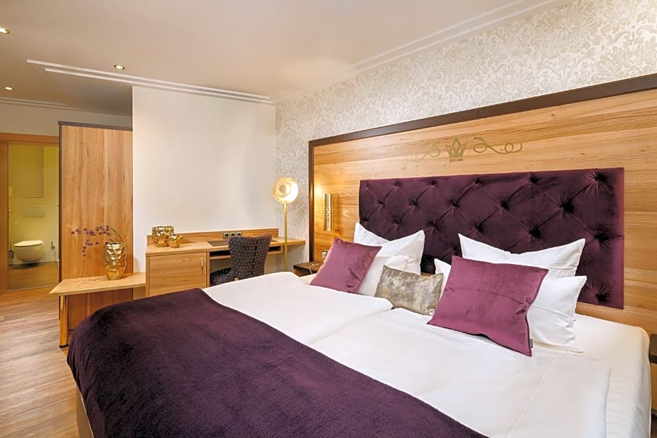 Hotel Schlosskrone offers a variety of rooms, including Comfort Double Room, Deluxe Quadruple Room, Classic Single Room, Family Room, Superior Double or Twin Room, Deluxe Double Room, Superior Triple Room, Comfort Double or Twin Room, Comfort Double Room with Balcony, Suite, Deluxe Family Room, Junior Suite, Suite Schlossblick, and Royal Suite. The rooms range in size from 161 sqft to 700 sqft and can accommodate anywhere from 1 to 6 adults, with additional children allowed in certain rooms. Smoking is not allowed in any of the rooms. The beds vary in type, with options such as King size, Twin, Queen size, and Sofa Bed.