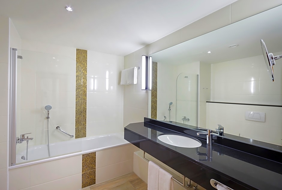 1. The hotel is 4 star and leaves more to be desired. Overall it has an old style. 2. We had mixed experience with staff especially during check in. A simple clarification or answer to Parking would have helped. 3. A small fridge in the room will be helpful.