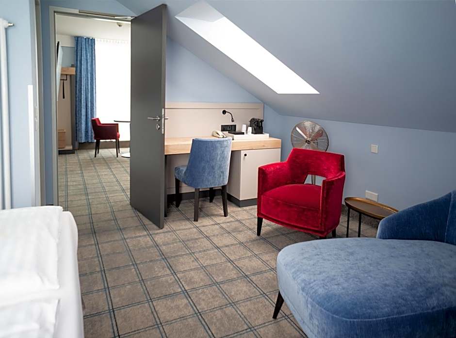 Hotel König Ludwig II offers a variety of room types including Comfort Double Rooms, Deluxe Double Rooms, Comfort Single Rooms, Business Double Rooms, Junior Suites, and Business Single Rooms. The Comfort Double Rooms and Business Double Rooms can accommodate 2 adults and have twin beds and a double bed. The Deluxe Double Rooms and Junior Suites can accommodate 2 adults and 2 children and have twin beds and a double bed. The Comfort Single Room and Business Single Room are designed for single occupancy with a twin bed. All rooms are non-smoking.