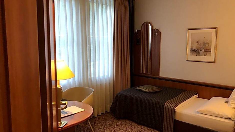 Location was nice. There was a bus (Line 2) connecting directly the train station to the Hotel. (Bus stop just outside the hotel! ) Although I arrived on Sunday afternoon, and the reception was closed, I had received detailed instructions on how to find my key and get in. The room was ok, looked clean, with comfortable bed and bathroom, and a small balcony. It had a TV, free wi-fi connection, a small mini bar and ironing board. The heating worked and was indeed needed as the temperature some days in October were quite low. Breakfast was adequate: Coffee, a choice of tea, a choice of cereals, , butter, jams, milk, yoghurt, poridge, choice of breads, some cake, and on demand eggs. The staff was pleasant and helpful. I would definitely consider staying there again.