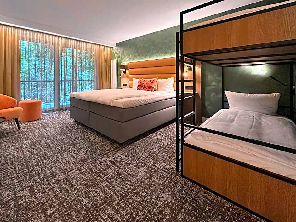 Hotel Gladbeck van der Valk offers a variety of rooms including Deluxe Double Rooms, Comfort Triple Rooms, Family Rooms, Standard Double Rooms, and Comfort Double Rooms. All rooms have a size of either 280 sqft or 237 sqft and are non-smoking. The Deluxe Double Room, Standard Double Room, and Comfort Double Room can accommodate 2 adults and 1 child, while the Comfort Triple Room can accommodate 3 adults and 1 child, and the Family Room can accommodate 4 adults and 2 children. The beds in the rooms range from a Queen size bed to Twin beds with some rooms also featuring a sofa bed.
