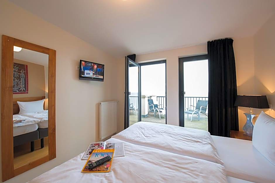 Aparthotel Ostseeperle Glowe - schön gestrandet sits right on the beach in Glowe, Germany, at Haupstraße 42, just 0,2mi from the city center. It blends apartment-style living with Baltic views, offering an Ocean view and Balcony options, plus a Kitchen, Kitchenware, and Kitchenette for easy self-catering. Upper floors are accessible by elevator, and Non-smoking rooms help keep stays fresh.
