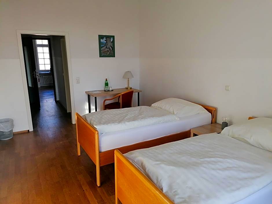 A lovely, quiet room in a relaxing, thoughtful atmosphere, away from the rush and bustle of everyday life. We immediately felt totally at home there. Our room was spotless, with comfortable beds and a well-equipped bathroom, and the restaurant was excellent. Don't hesitate about eating there - the food was first-class, and the prices perfectly reasonable. A special mention goes to the restaurant staff, who were attentive, knowledgeable and fun. Breakfast was a help-yourself buffet in the German style, with rolls, cold meats, cheeses and sweet options as well. Excellent all round, ideal for a retreat from modern life... We enjoyed every minute, and have added the hotel to our list of best addresses.