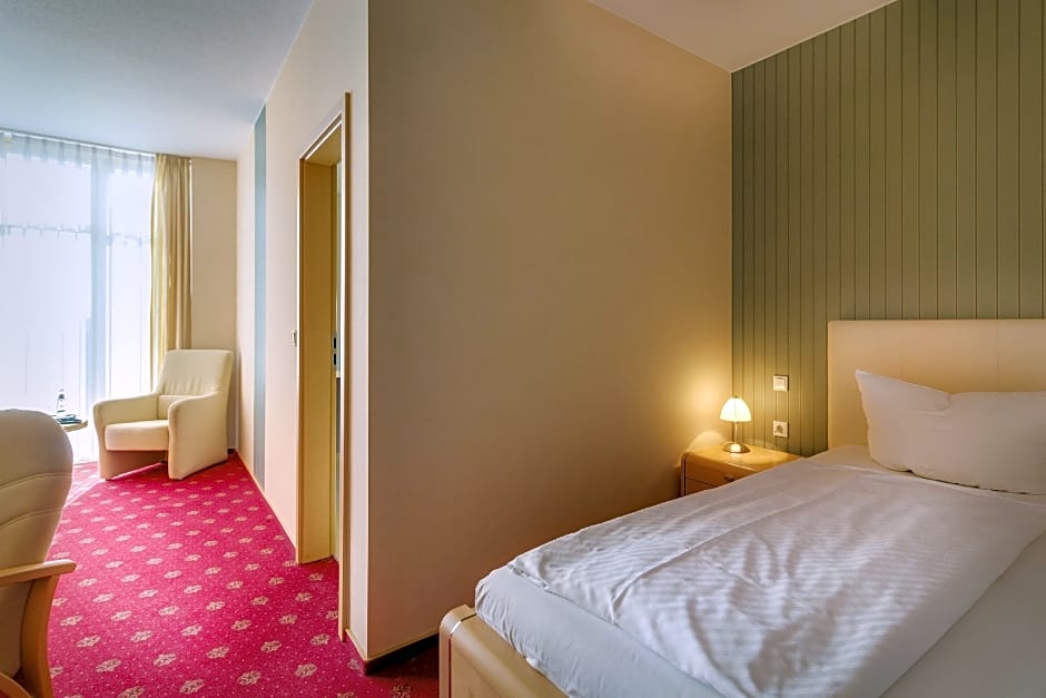 Now, let's talk about the variety of room types available at this fantastic hotel. You can choose from beautiful single rooms in the main building or opt for a single room with park view in the charming villa. If you're traveling with a companion, the hotel offers spacious double rooms in both the main building and the villa, complete with garden views. For those seeking a little more luxury and space, SeeHotel Großräschen presents its suites, including an exquisite suite in the main building and a charming junior suite in the villa. And if you need even more room, the hotel offers a two-bedroom suite that ensures you have all the space and comfort you could possibly need. No matter your preference, there's a room type perfect for you at SeeHotel Großräschen. So why wait? Book your stay now and experience the comfort and style this hotel has to offer.