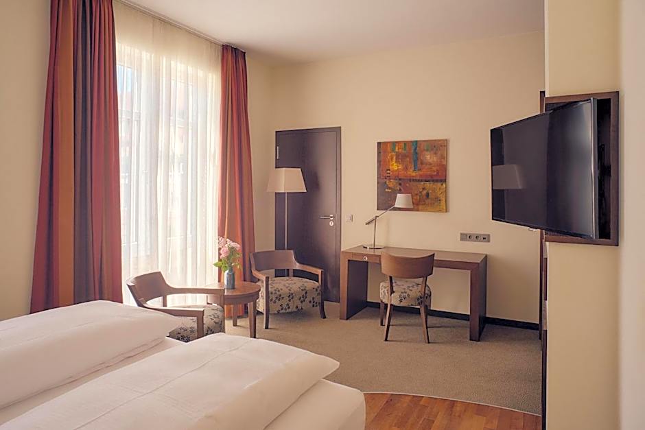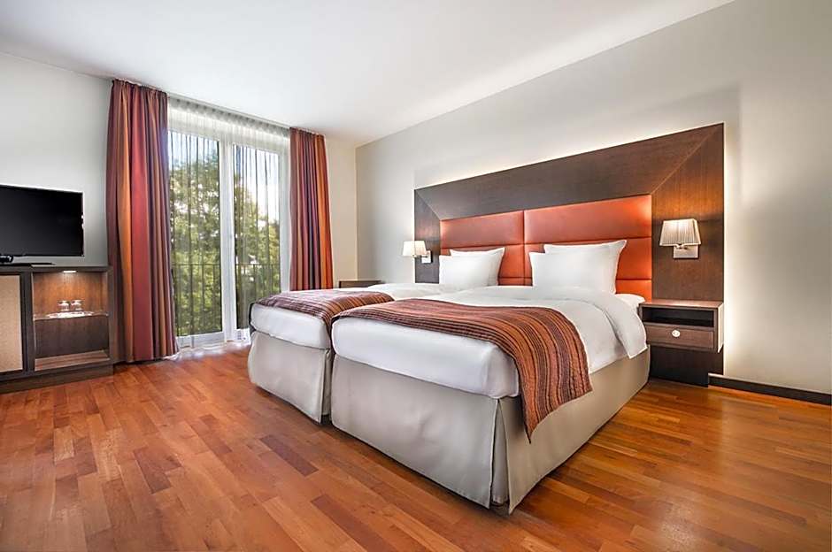 The hotel is a bit far from the city center, but there is a bus station right in front of it and it takes you to the train station from where you can take the train to the city. Otherwise, the hotel is located in a very green and beautiful area. The staff was very nice and helpful. The room was basic, but very clean, spacious and comfortable. The check in and check out was very smooth and quick..
