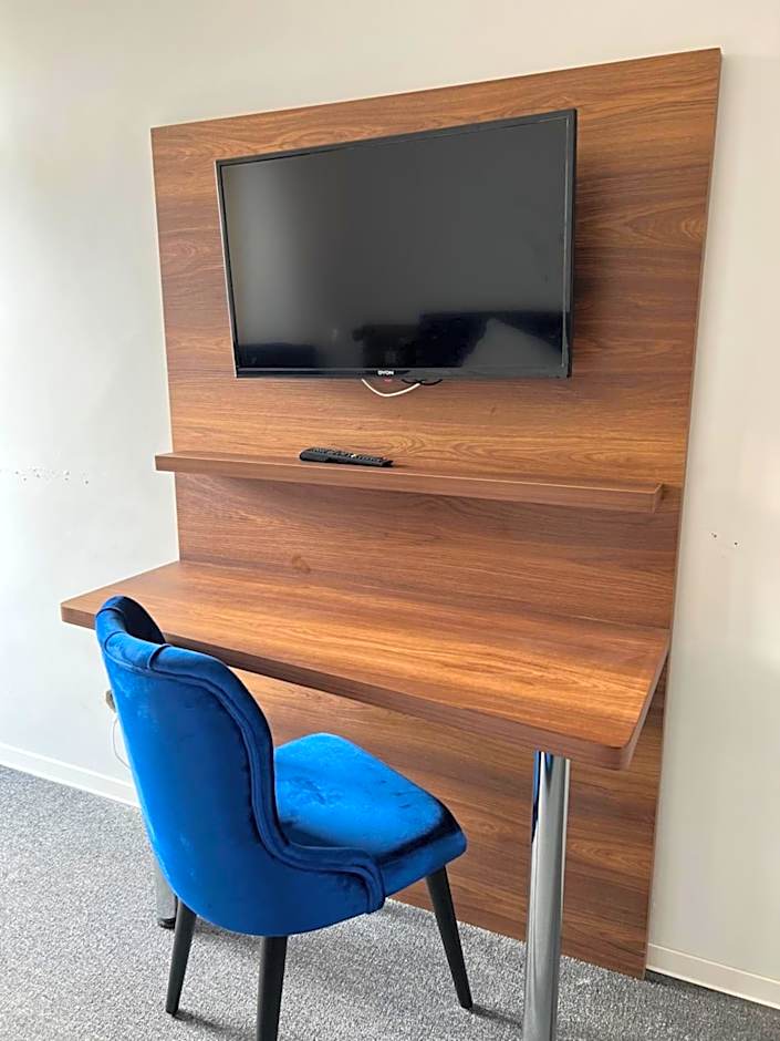 Bright room offers a TV and complimentary toiletries in the private bathroom.