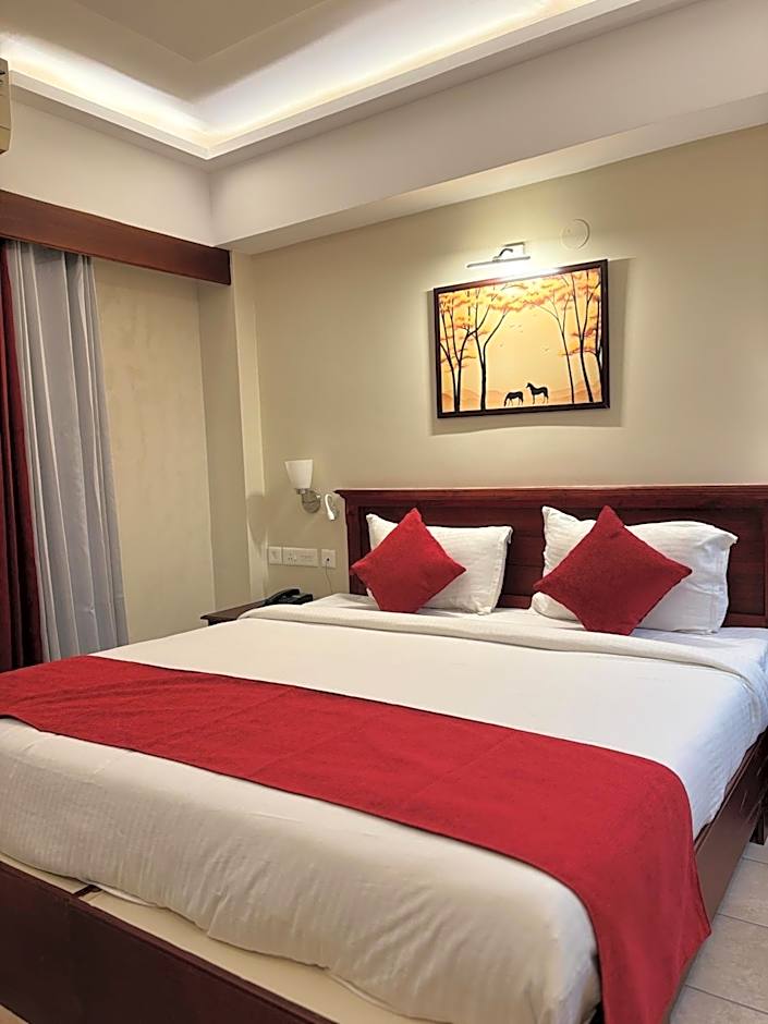 1 King Bed Deluxe is 355 square feet and includes cable tv, hairdryer, ironing set, safe, and bathrobes.