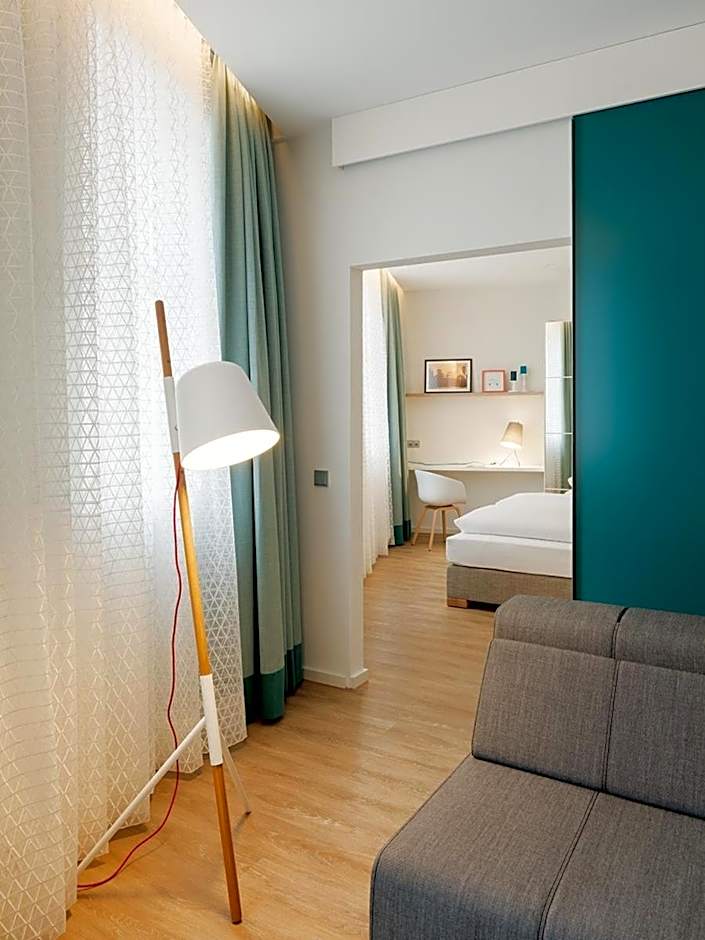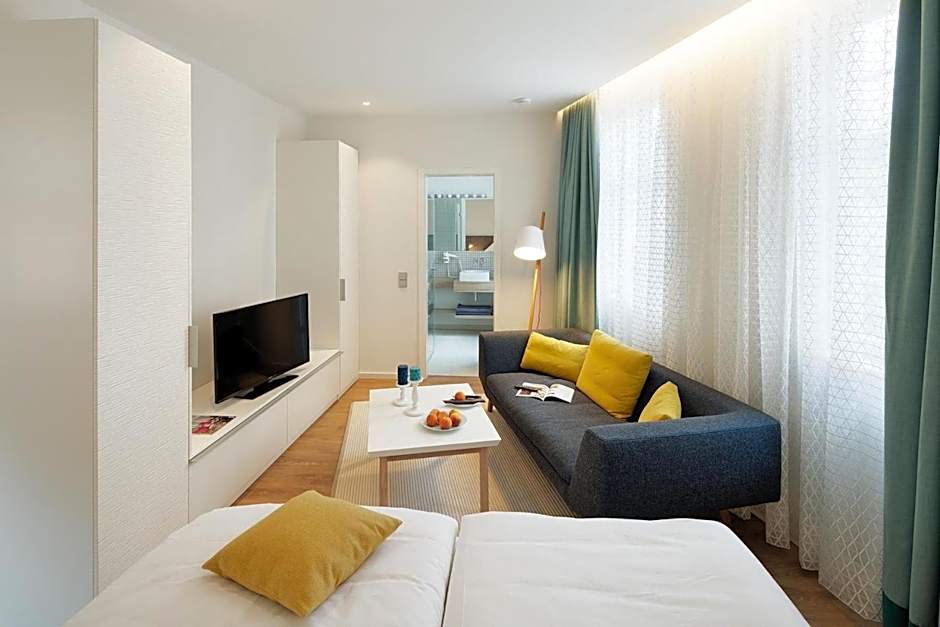 The Goldkind Feine Wohn- & Schlafstuben hotel offers different types of rooms including Studios and Suites. All rooms are non-smoking and can accommodate 2 adults with no children. The rooms are spacious, with sizes ranging from 388 sqft to 969 sqft. The beds in all rooms are King size.