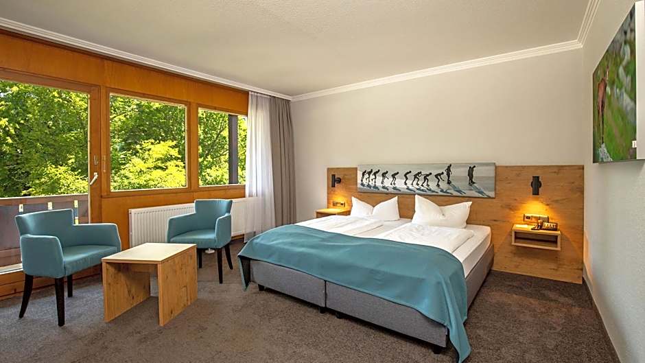 The spacious double room features a seating area, a wardrobe, a balcony with garden views as well as a private bathroom boasting a walk-in shower. The unit has 2 beds.