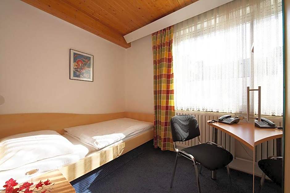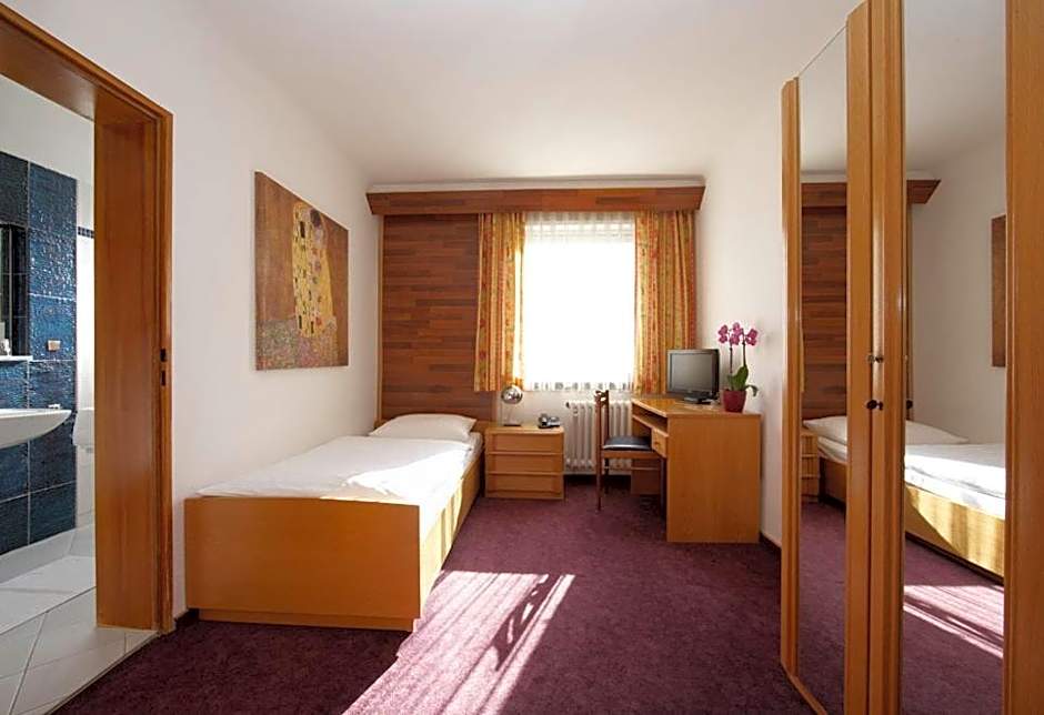 A small hotel in a good location in Karlsruhe, with public transportation and plenty of food options around. The rooms are a little spartan, but they are clean and the beds are comfortable, and the breakfast is fantastic.