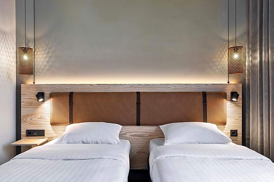 The Moxy Frankfurt Airport Kelsterbach offers two types of rooms: the Moxy Queen Sleeper and the Moxy Twin Sleeper. Both room types are double occupancy and have a room size of 183 sqft. Smoking is not allowed in either room type. The Moxy Queen Sleeper has 1 Queen size bed, while the Moxy Twin Sleeper has 2 Twin beds. Both rooms can accommodate 2 adults and 1 child.