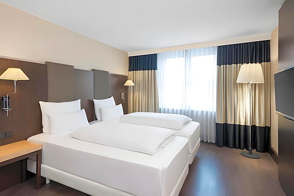 [NH Frankfurt Airport] пропонує різноманітні типи номерів, щоб задовольнити ваші потреби. Стандартні двомісні або двокімнатні номери стильно оформлені та оснащені сучасними зручностями для вашого комфорту. З доступними двома різними видами, ви можете вибрати номер з видом, який відповідає вашим уподобанням. Номери звукоізольовані, що забезпечує спокійний нічний сон. Кожен номер має власну ванну кімнату та безкоштовний Wi-Fi, що дозволяє вам залишатися на зв'язку протягом усього перебування. З ліжками доступними в обох розмірах - односпальному та королівському, у вас буде достатньо місця, щоб розслабитися і відпочити після довгого дня подорожей.