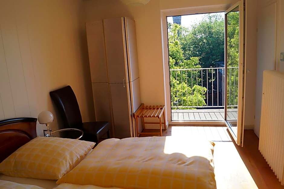 Easy to get to the train station, with a tram stop right outside the door. Owner Manfred welcomed me warmly, warning that his last room was the smallest, and tiny it was, with a tiny bathroom, but clean, and it had what I needed. Excellent breakfast in the morning, with pastries, fresh berries, salmon and charcuterie, cheeses, anything to make anyone happy.