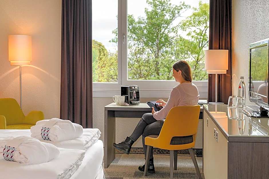 With a range of room types available, including Standard Twin Rooms, Superior Double Rooms, Standard Double Rooms with Sofa, Standard Double Rooms with Twin Beds, Privilege Double Rooms, and Standard Double Rooms, you're sure to find the perfect accommodation to suit your needs. Each room is a comfortable 248 square feet, ensuring ample space for you and your companions. Whether you're traveling solo, as a pair, or with a small family, the Mercure Hotel Köln West has got you covered.