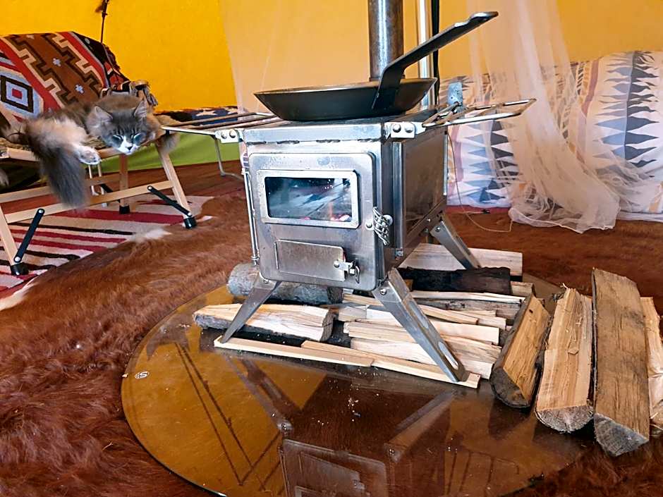 This tent features a pool with a view and a fireplace. The tent features a tea and coffee maker, a seating area, as well as a shared bathroom boasting a shower and a hairdryer. Among the room amenities are a barbecue, parquet floors, heating as well as an outdoor dining area and garden views. The unit has 3 beds.