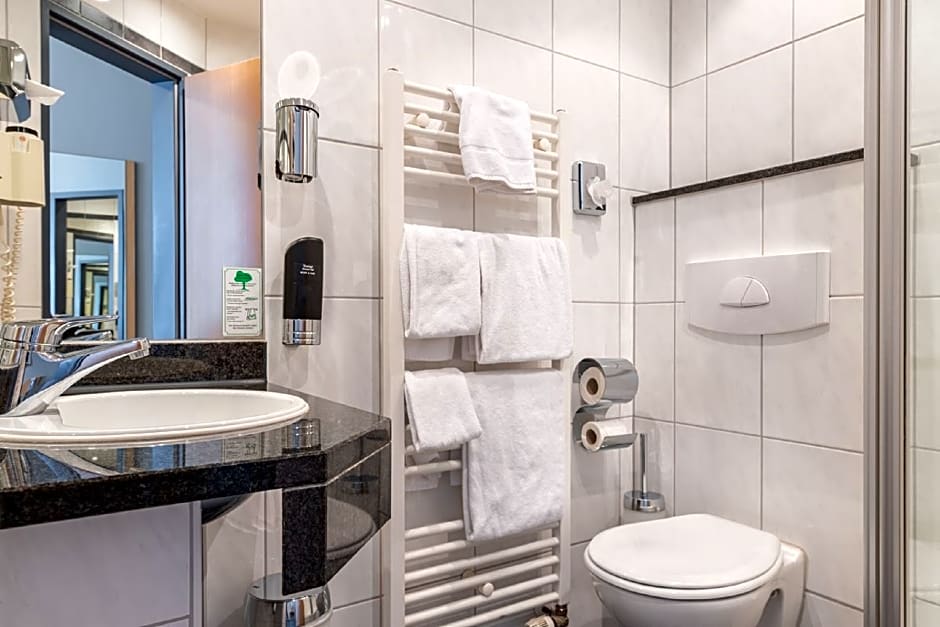 We had a really nice 2 nights here. Checked in at midnight with no problems after a late flight. The room was clean and big enough for us. Bathroom was very clean. All the staff were friendly and spoke enough English to help us through our broken German. Breakfast was very good - nice continental selection of cold meats and cheeses, bread, yoghurts, cereal, bacon and eggs.
